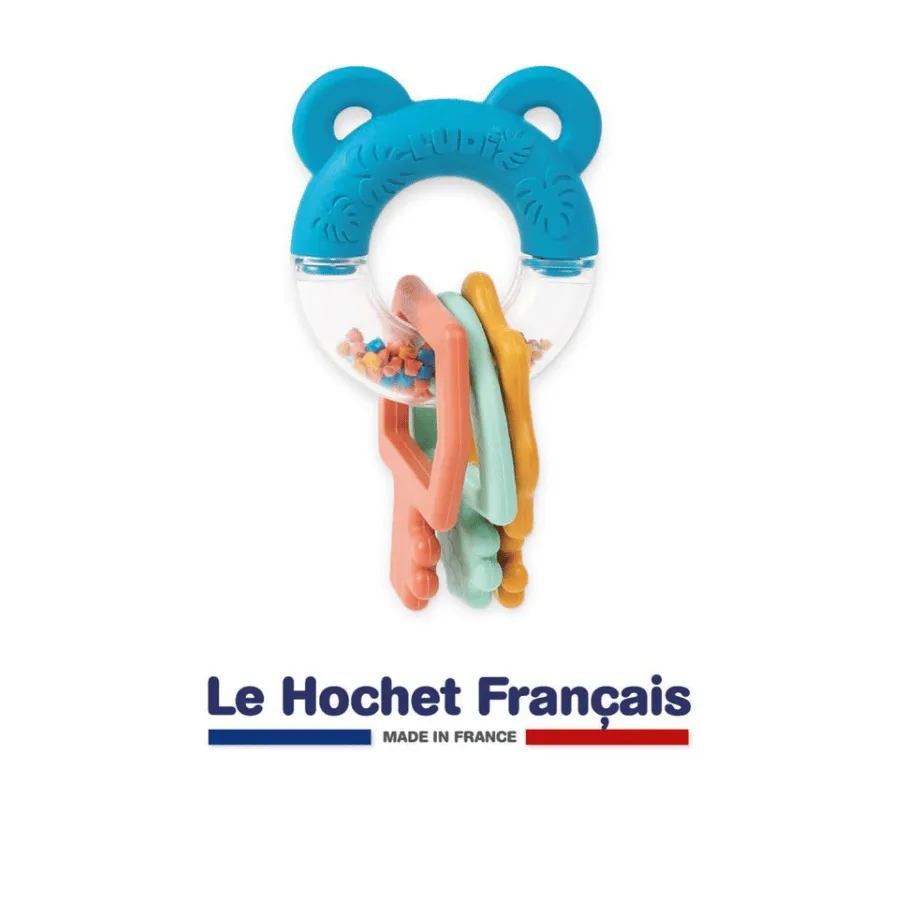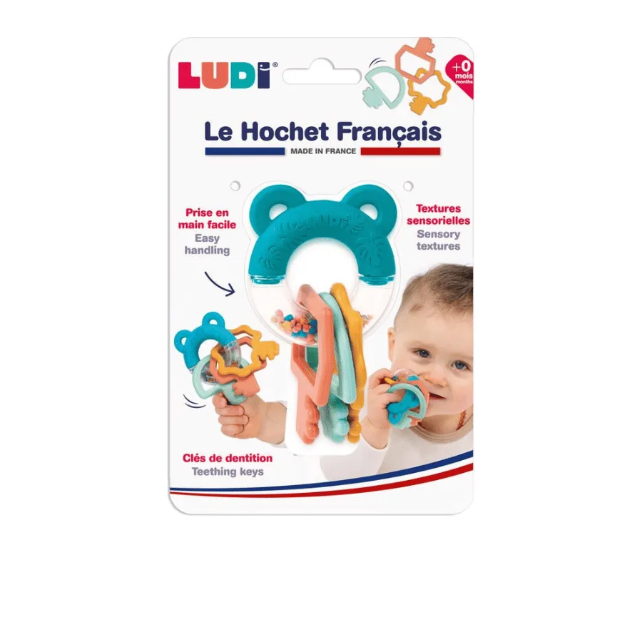 Anneau de Dentition Clés – Ludi est conçu pour apporter un soulagement agréable à votre bébé dès sa naissance. Doté de multiples textures à mâchouiller, il est parfait pour apaiser les gencives sensibles lors de la poussée dentaire. L’anneau texturé et ses couleurs vives stimulent les sens de votre enfant, tout en le captivant avec le jeu de billes sonores qui ajoute une dimension interactive au jouet.