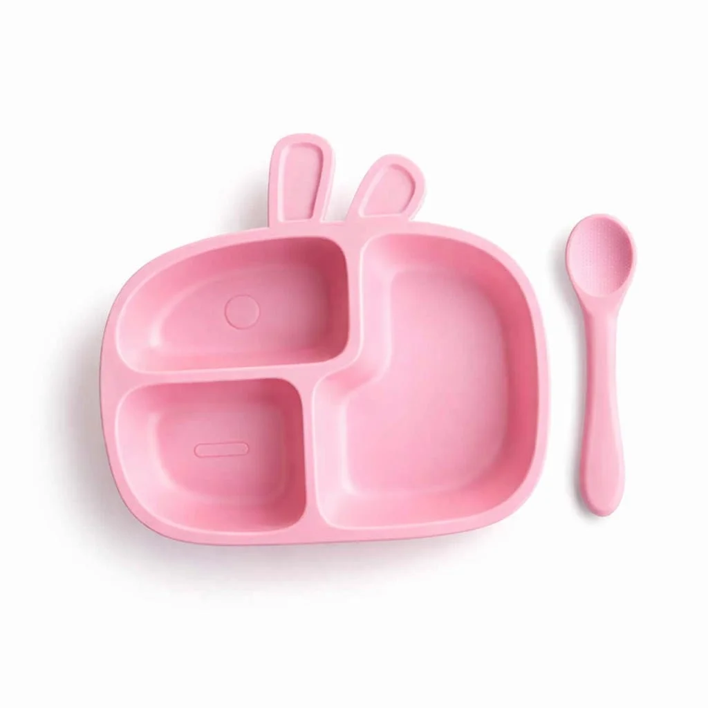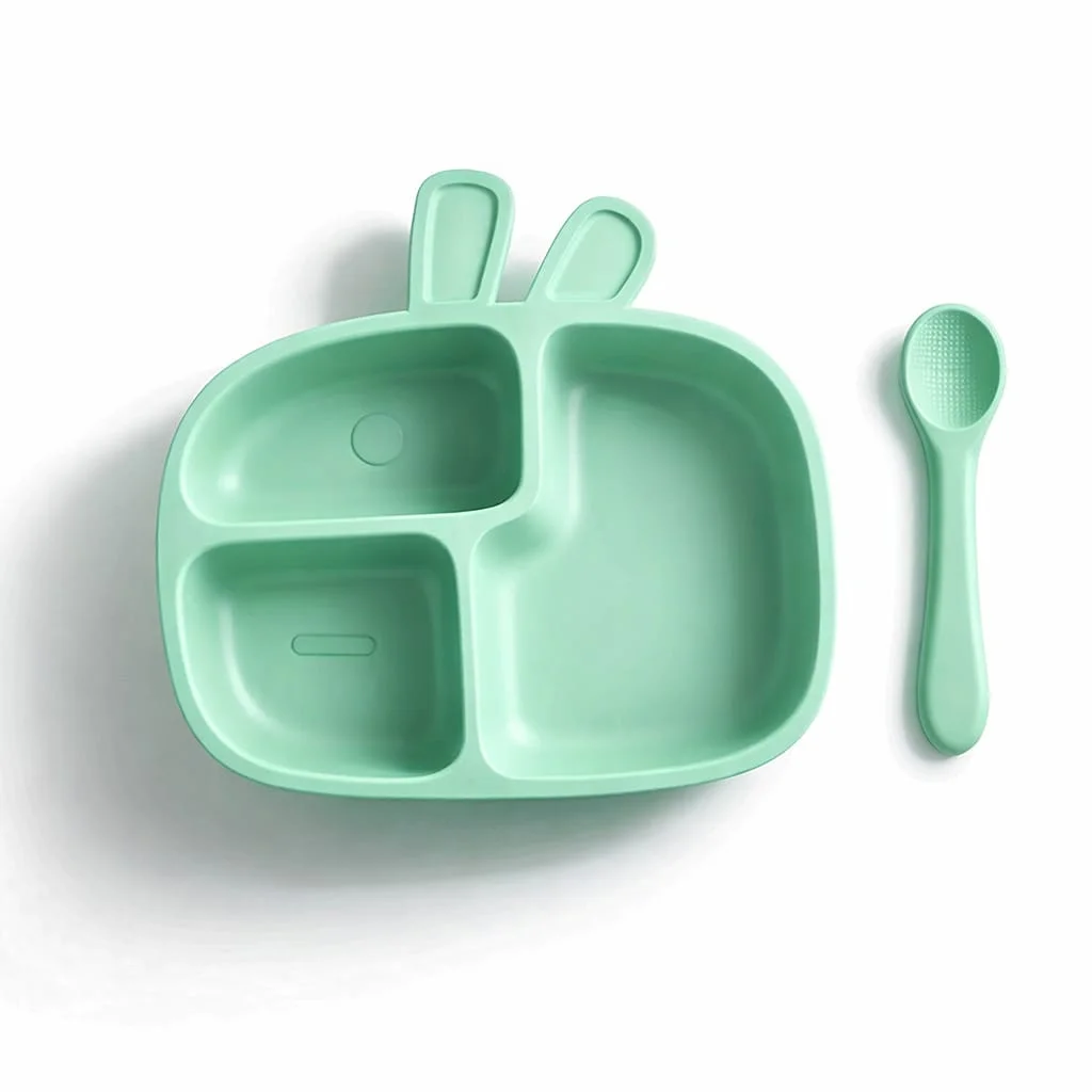 Assiette compartimentée en silicone avec cuillère pour bébé