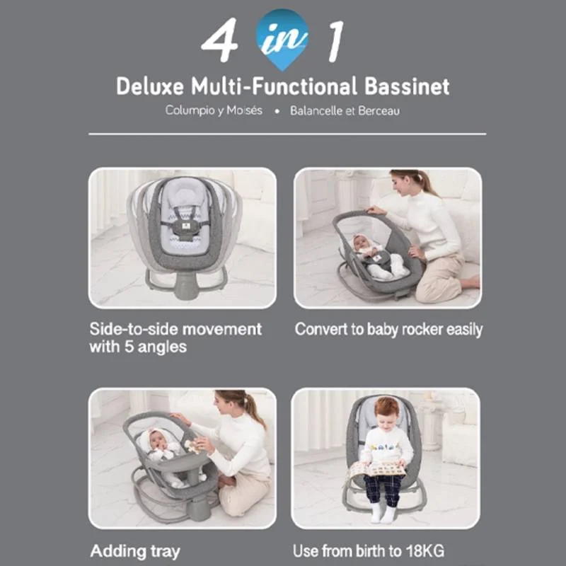 La balancelle transat multifonctionnel de luxe 4en1 – Mastela est conçue pour accompagner bébé au quotidien en combinant confort, praticité et sécurité. Grâce à son concept 4en1, elle s’adapte parfaitement aux différents moments de la journée : repas, détente, balancement et sieste.