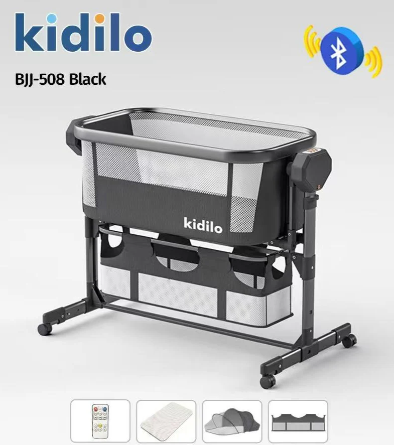 Gobébé Maroc vous propose ce berceau électrique Kidilo BJJ-508 pour offrir à votre bébé des nuits paisibles. Une solution moderne pour les parents soucieux de praticité et de sécurité. Avec Bluetooth, télécommande, plusieurs vitesses de bercement et un choix de couleurs élégantes, le berceau Kidilo BJJ-508 facilite les soins de bébé et rend ses nuits plus paisibles.