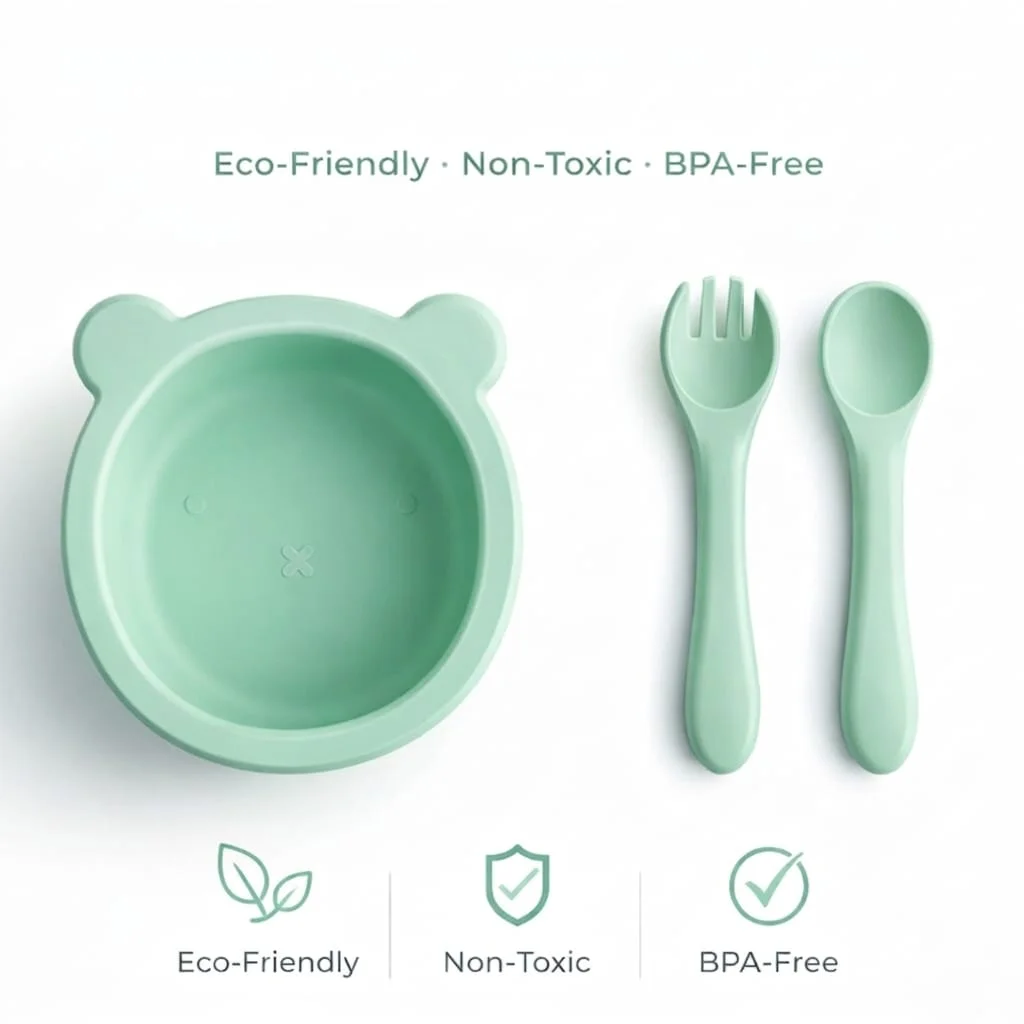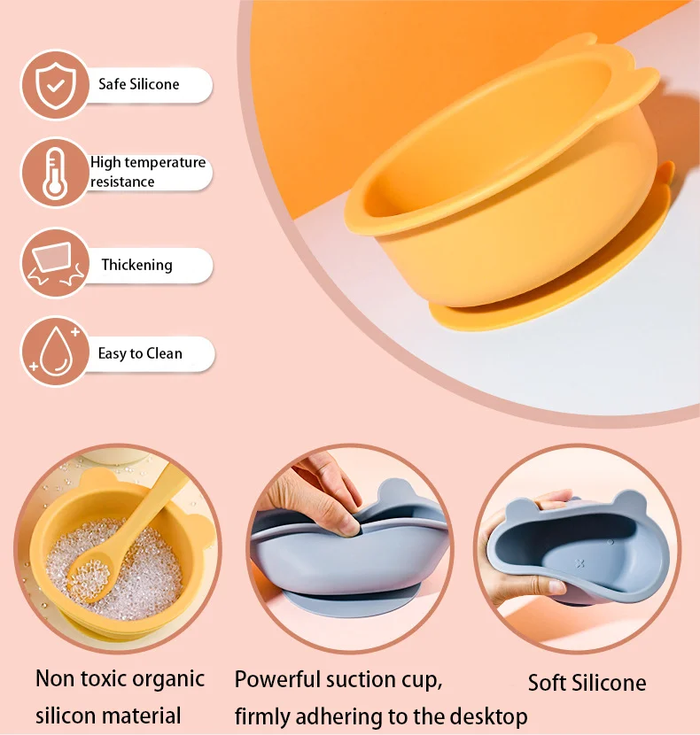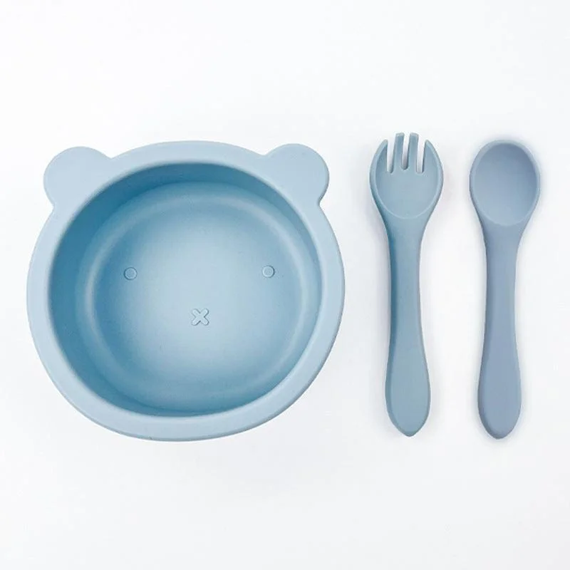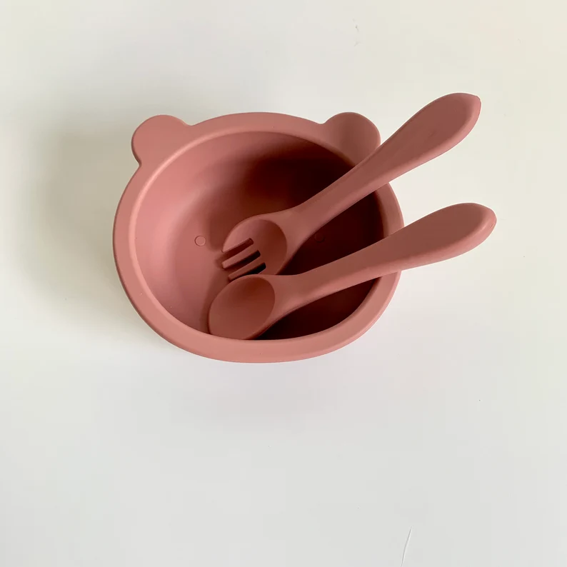 Bol en silicone avec fourchette et cuillère pour bébé