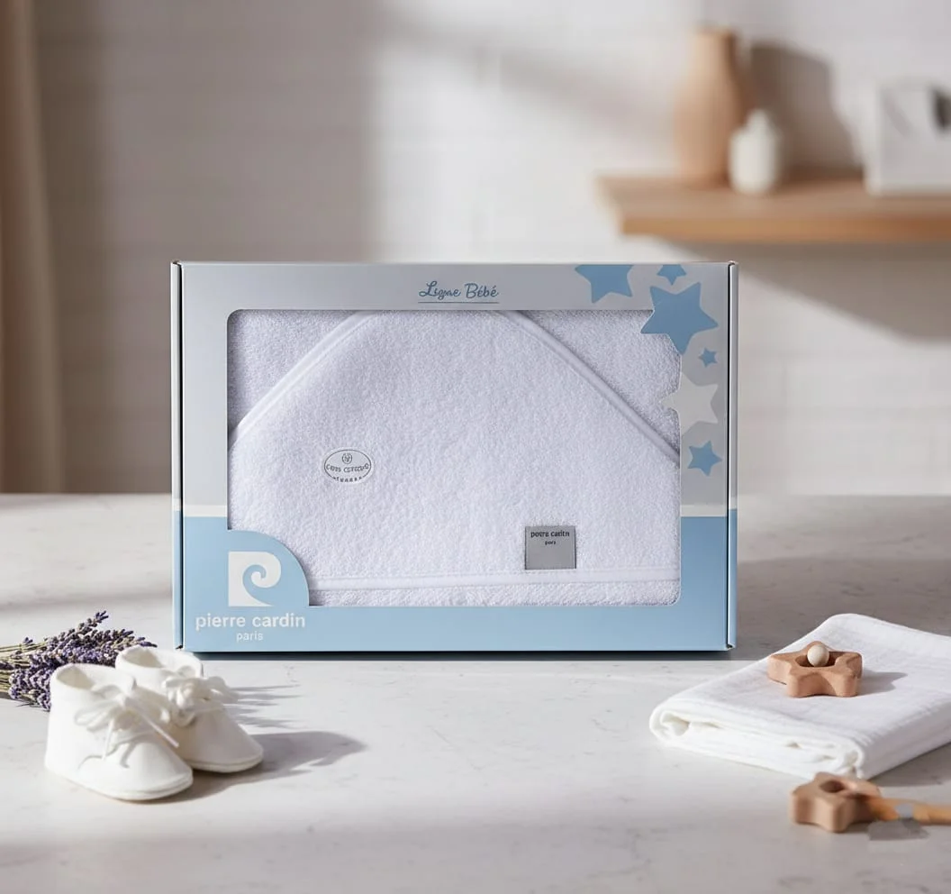 Offrez à votre bébé douceur et confort avec cette cape de bain 100 x 100 cm signée Pierre Cardin, disponible chez Gobebe.