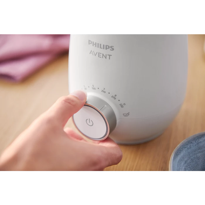 • Sûr et facile à utiliser : Il suffit de choisir le volume de lait souhaité, d’appuyer sur le bouton de démarrage et le chauffe-biberon s’occupe du reste. Il s’éteint automatiquement une fois le cycle terminé.