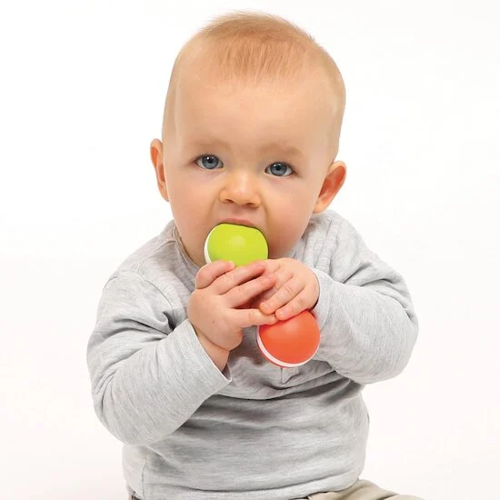 La manipulation de ces hochets éveille l’acuité visuelle et auditive de bébé qui écoute les petites billes s’agiter à chaque secousse. Ils motivent bébé à les suivre du regard lorsqu’il les agite.