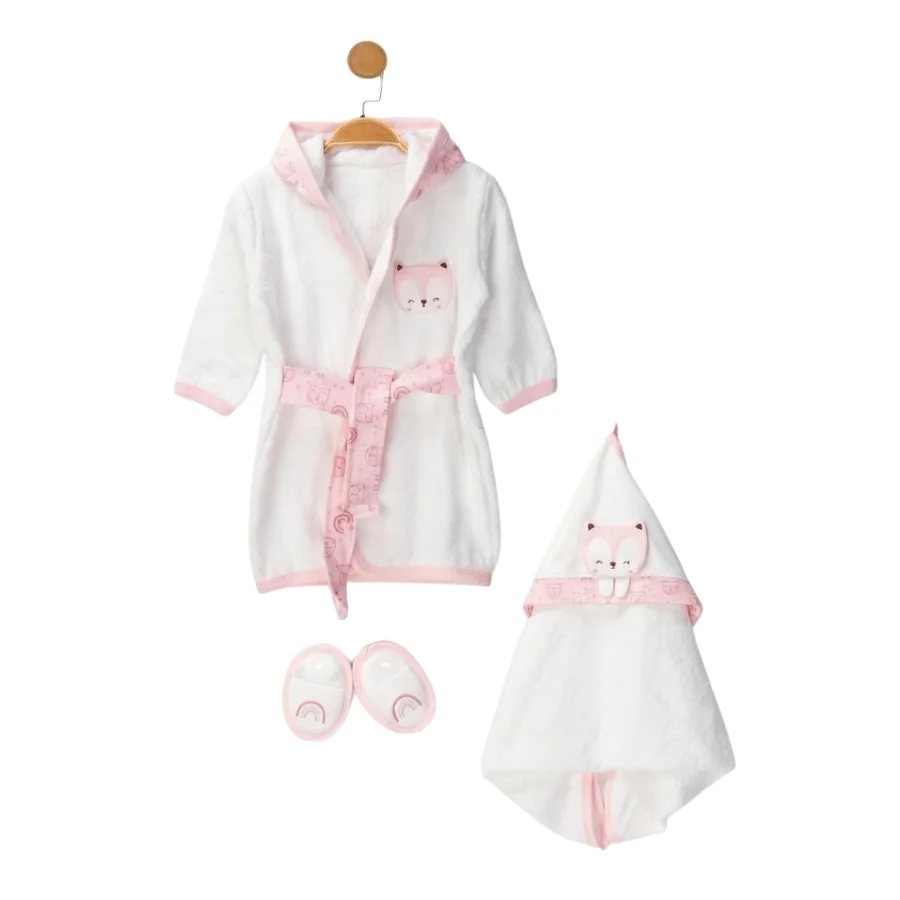 Le coffret de bain bébé 3 pièces motif chat rose – Eke Baby est parfait pour transformer le moment du bain en un instant doux, rassurant et plein de tendresse. Conçu à partir de matières douces et absorbantes, il respecte la peau délicate des nourrissons et assure un séchage confortable après la toilette.
