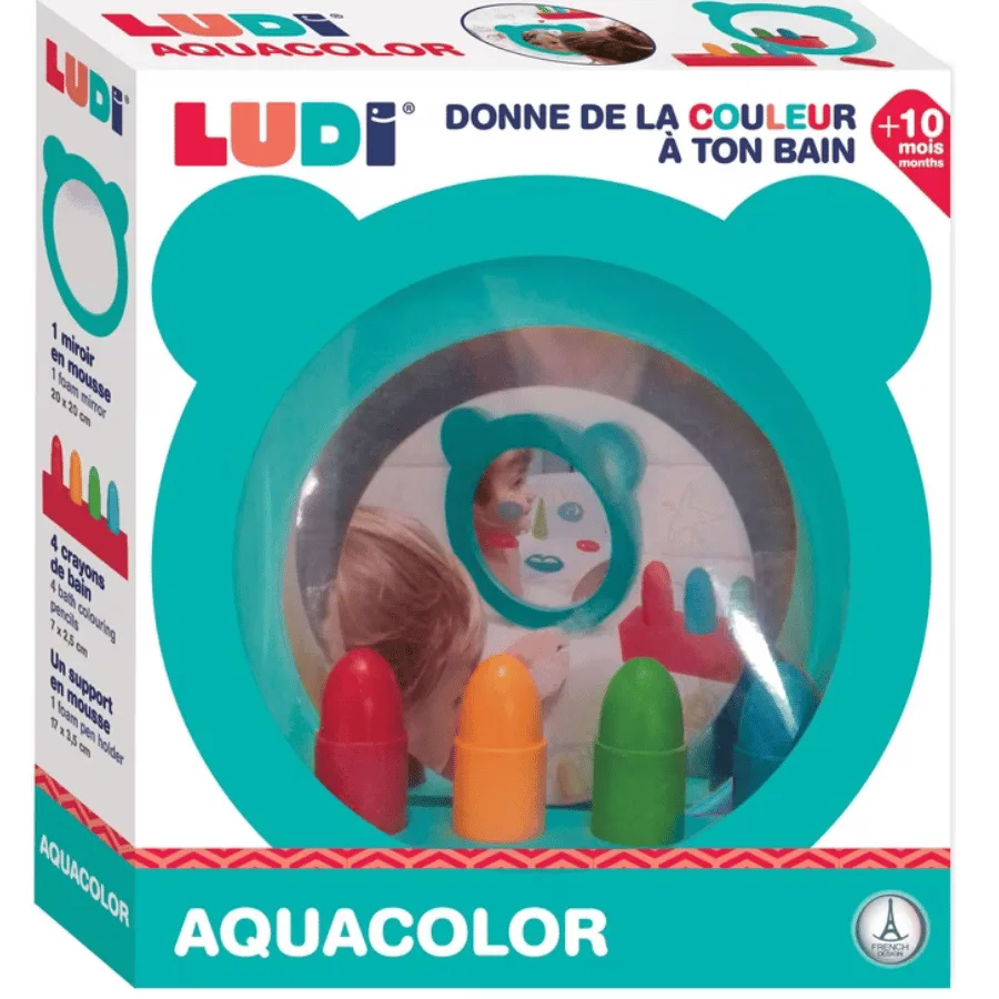 Le Coffret de bain Aquacolor – Ludi est un jouet d’éveil innovant conçu pour les enfants dès 10 mois. Il transforme le bain en moment ludique et créatif en permettant de dessiner sur le miroir ou la baignoire.