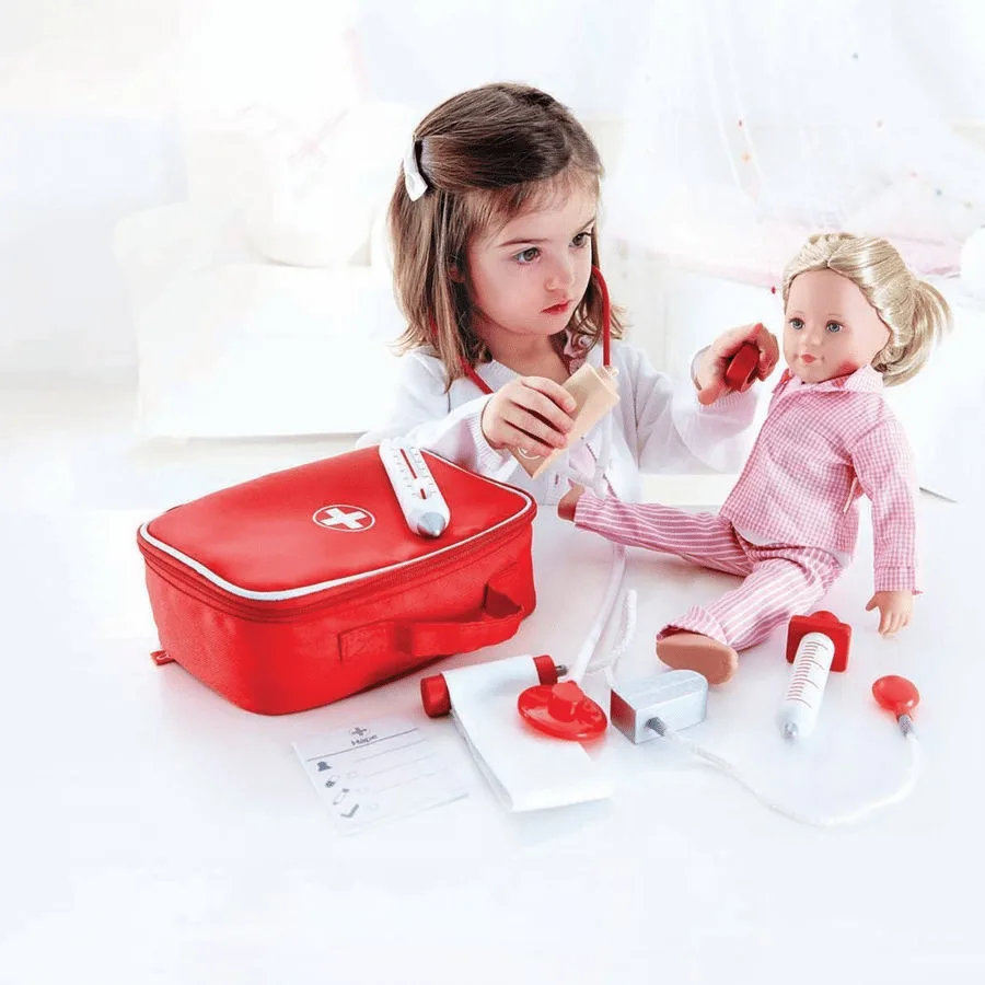 - Contient l’essentiel pour les petits jeux de docteur, un assortiment de sept pièces de bois, silicone et tissus de bonne qualité.