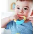 - Conçue pour être tenue par les petits doigts, elle atténue l’inconfort des poussées dentaires en la mâchant