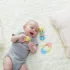 - Les anneaux mobiles et les anneaux en caoutchouc en relief sur l’anneau de dentition encouragent l’exploration tactile.