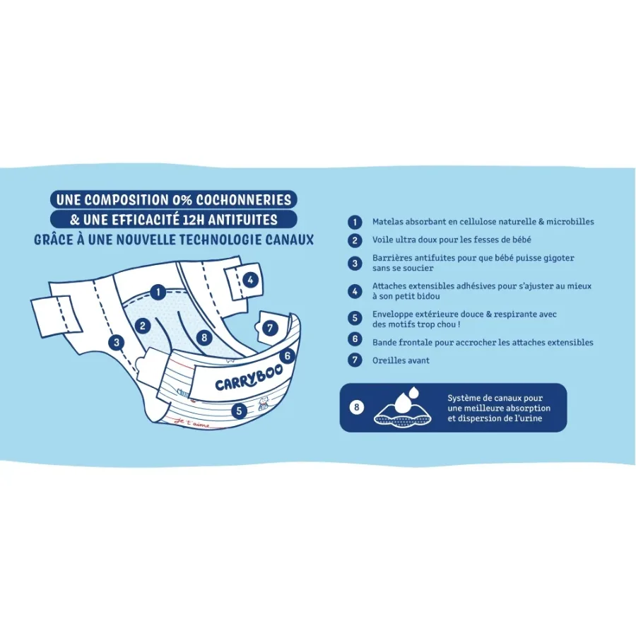 Couches écologiques taille3 (4-9kg) 50 unités – Carryboo, ces couches « De Nos Régions », allient sécurité optimale et tendresse au quotidien pour votre bébé. Elles sont conçues pour assurer une protection et un confort inégalés, tout en intégrant des valeurs fortes qui font la différence.