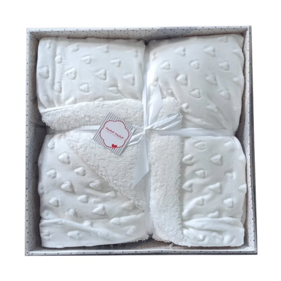 La couverture Naf Naf 110 × 140 cm en peluche avec cœurs en sherpa, comme la couverture110 x 140cm beige en peluche avec cœurs sherpa – Naf Naf, offre chaleur, douceur et confort. Elle accompagne bébé au quotidien. Sa texture en peluche ultra douce est associée à une finition en sherpa. Cela apporte une sensation cocooning parfaite pour les moments de repos, de sommeil ou de détente.