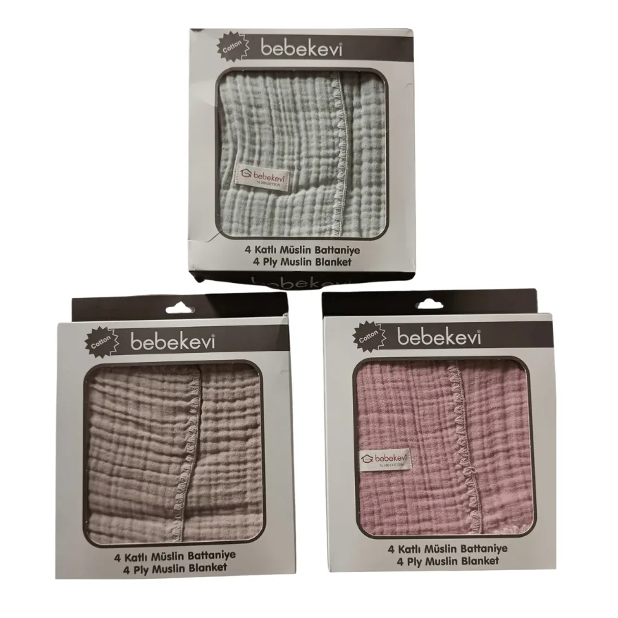 Les couvertures en mousseline de coton Bebekevi à 4 épaisseurs offrent douceur, légèreté et chaleur équilibrée pour le confort de bébé en toute saison. Conçues en coton respirant de haute qualité, elles assurent une excellente circulation de l’air tout en maintenant bébé bien au chaud, sans risque de surchauffe.