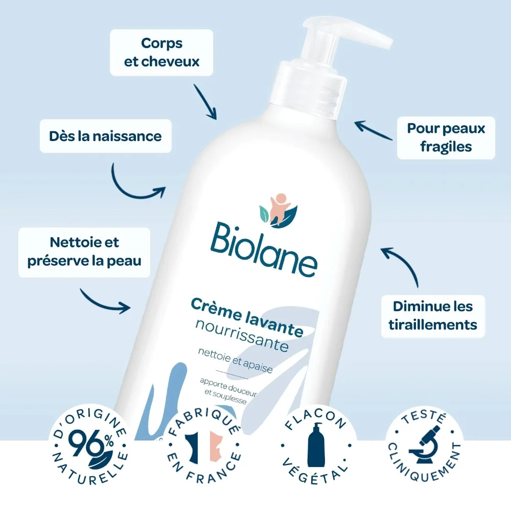 Grâce à sa formule douce et à sa texture crémeuse, la crème lavante nourrissante Biolane transforme la toilette quotidienne en un véritable moment de soin et de bien-être pour bébé.
