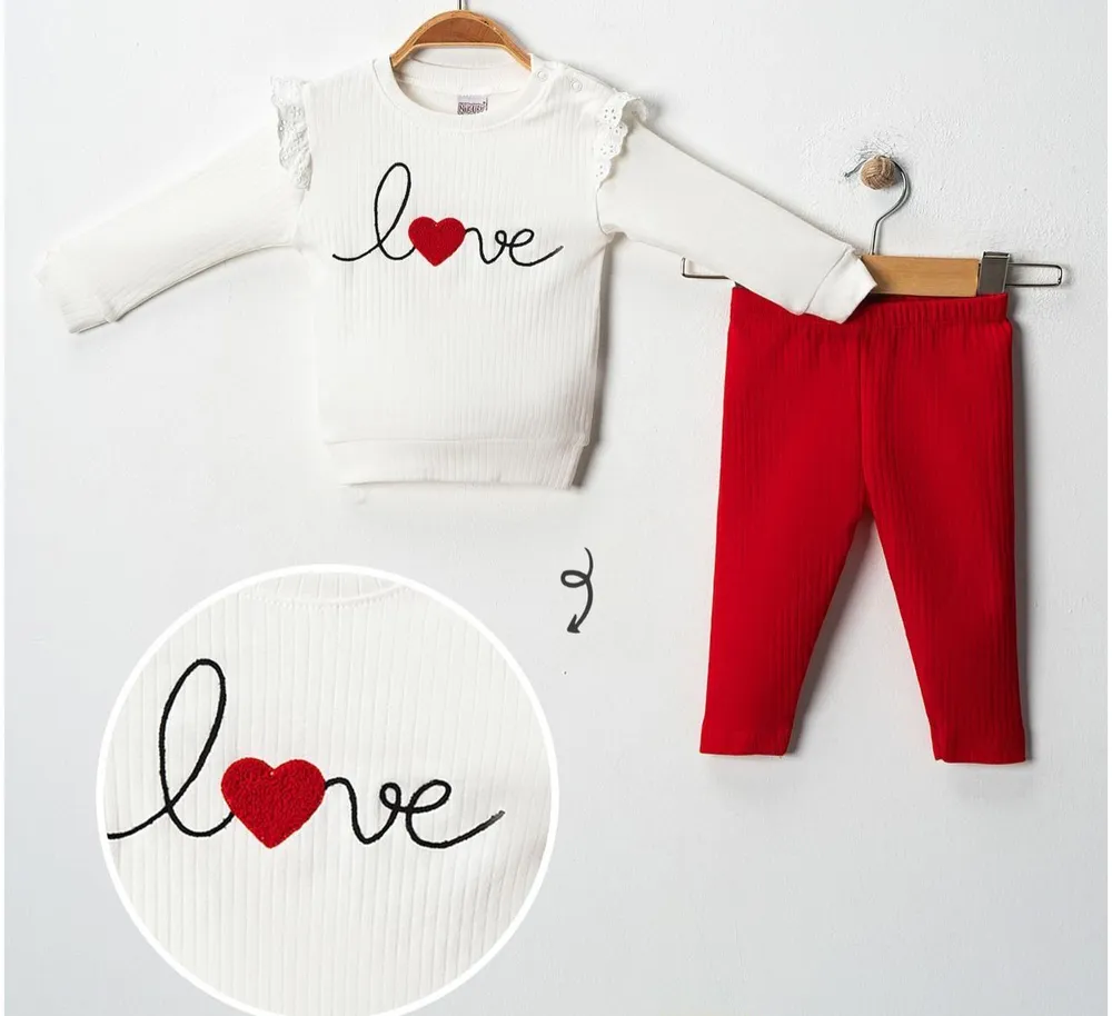 Ensemble 2 Pièces Pour Fille Imprimé Love – Nikuby offrira à votre fille confort, style et un look tendance. confortable et pratique, il se ferme par deux bouton-pression sur l’épaule. Le pantalon, confortable et tendance, est en coton doux.