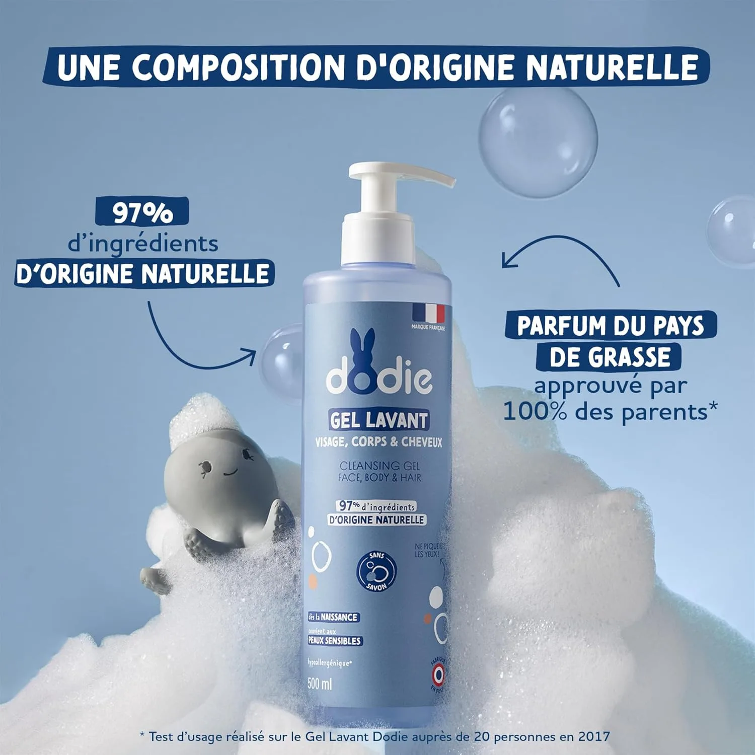 Le Gel Lavant 3 en 1 Dodie est une solution douce et efficace pour nettoyer et apaiser la peau, le cuir chevelu et les cheveux de bébé.