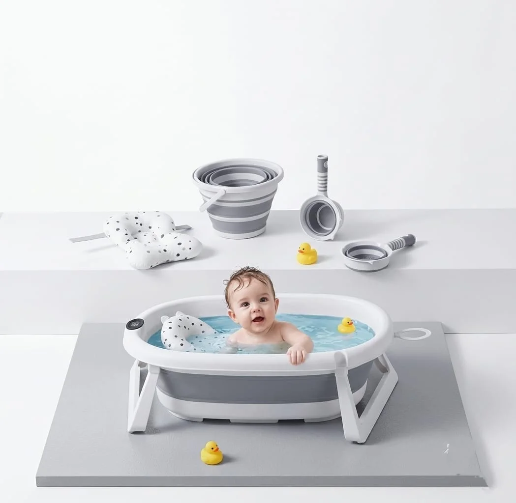 Kit baignoire pliable et portable avec thermomètre intégré – Bébé :