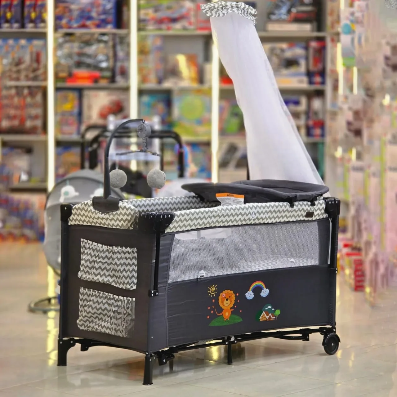 Lit parapluie 3-en-1 Burbay : Cododo, parc et balancelle – Confort et praticité pour bébé.