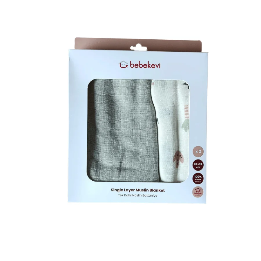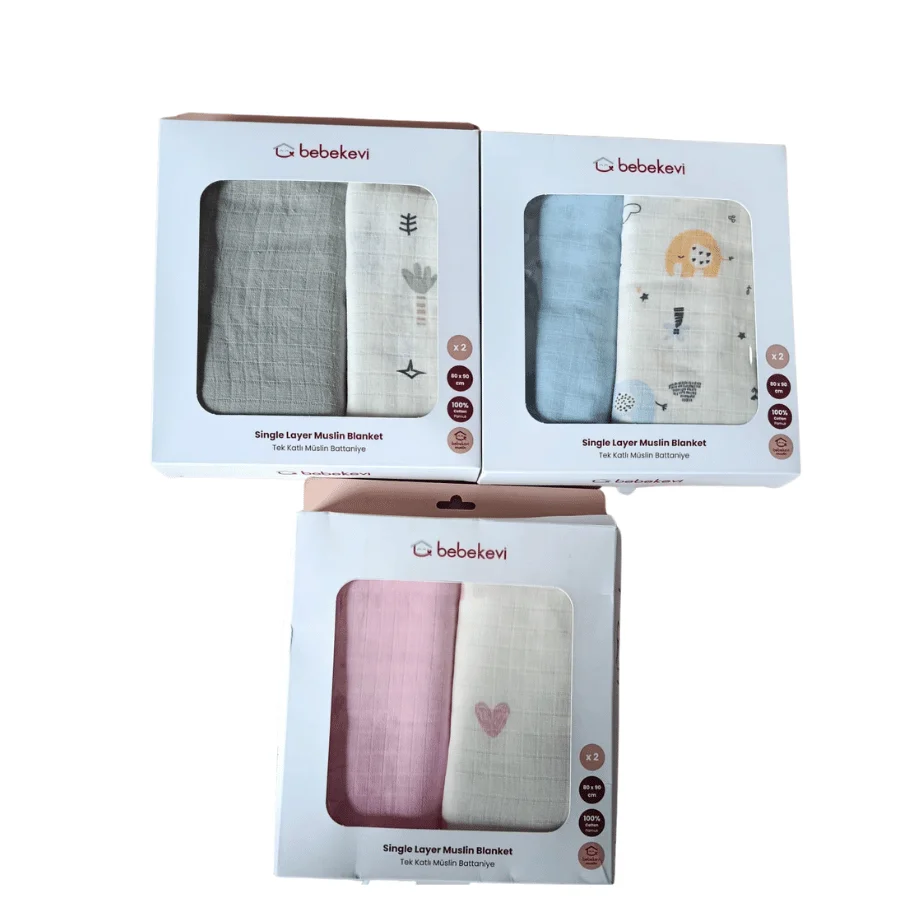 Gobébé Maroc vous propose ce lot de 2 couvertures bébé Bebekevi en mousseline simple épaisseur, conçues pour envelopper bébé de douceur tout en assurant une excellente circulation de l’air.