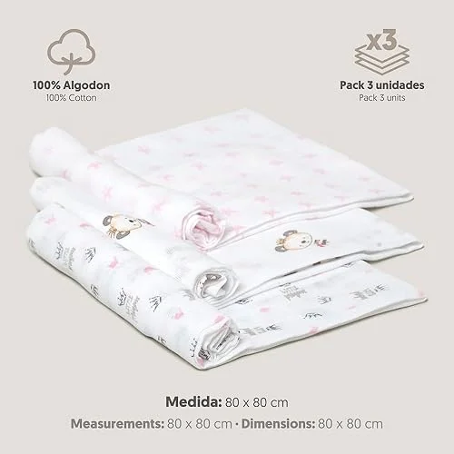 Le pack de 3 langes bébé Panda 80×80 cm roses – Interbaby est un indispensable pour les parents à la recherche de confort, de praticité et de douceur pour leur bébé. Fabriqués en gaze de coton, ces langes sont ultradoux, respirants et respectueux de la peau sensible des nourrissons dès la naissance.