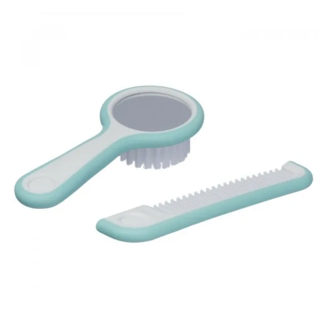 Pack Brosse et Peigne – Bebe Confort, cette magnifique brosse à cheveux pour bébé en nylon avec miroir intégré au dos et peigne aux dents sont un ensemble de soins capillaires pour peigner avec douceur les cheveux des tout-petits.