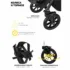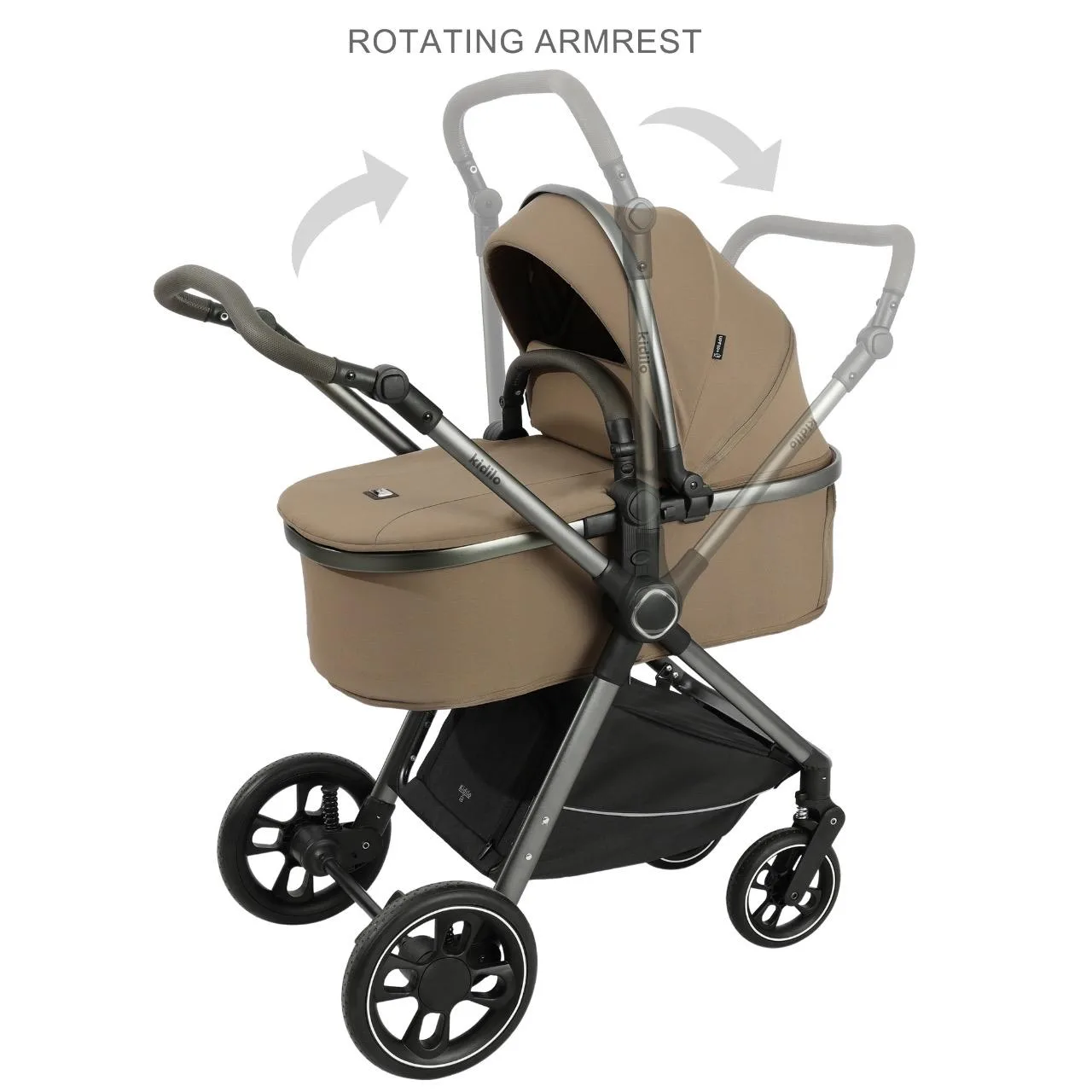 La poussette est utilisable comme berceau bébé avec poignée de transport pratique, elle est équipée d’un siège réversible, qui peut être installé dans deux positions : face à la route ou dos à la route. C’est particulièrement pratique pour les promenades par mauvais temps ou lorsque le soleil brille.