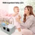 - Capacité Spacieuse : peut contenir jouets, couches, vêtements, livres et plus encore. Compartiments modulables grâce à des attaches velcro pour s’adapter à vos besoins.