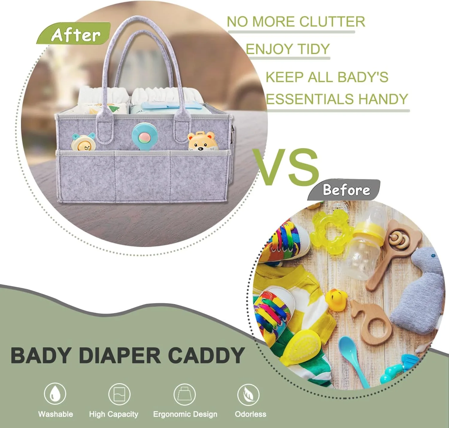 - Capacité Spacieuse : peut contenir jouets, couches, vêtements, livres et plus encore. Compartiments modulables grâce à des attaches velcro pour s’adapter à vos besoins.