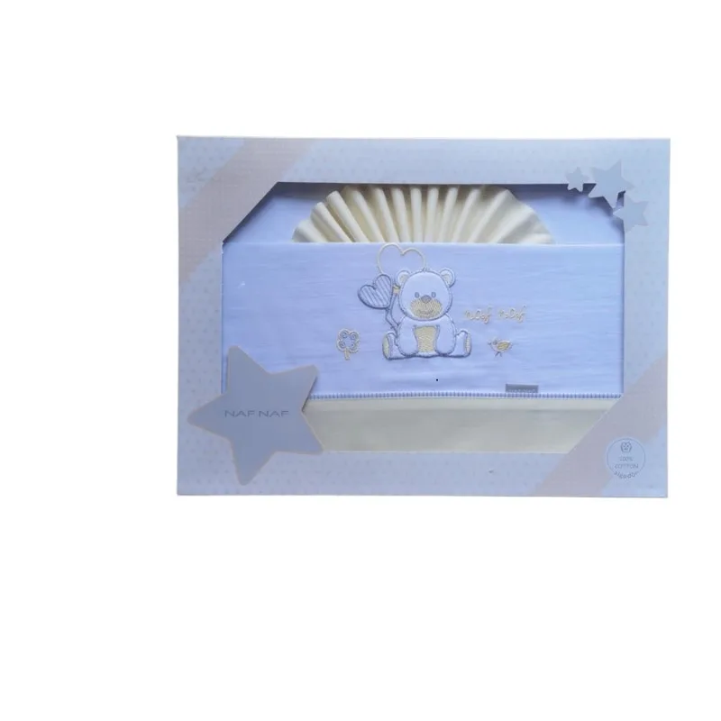 Parure berceau 3 pièces oso dormilon jaune 60 x 120 cm – Naf Naf est présenté dans une boîte avec un devant transparent pour que vous puissiez voir en détail la broderie de l’ensemble de drap. Extra-doux sur la peau de votre petit, cette parure berceau est compatible avec tous les lits bébé du marché. Elle est ornée d’un adorable motif d’ours qui apportera une touche ludique et chaleureuse à la chambre de votre enfant
