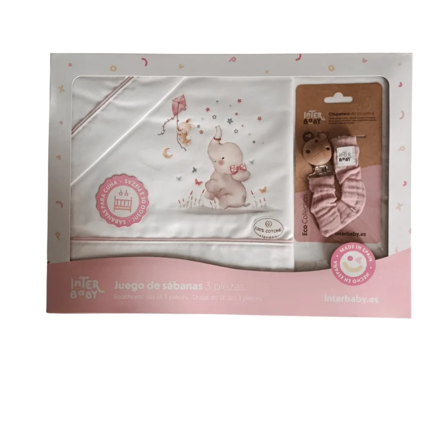 Parure de lit 3pièces 60 x 120 Rose + Attache sucette – InterBaby