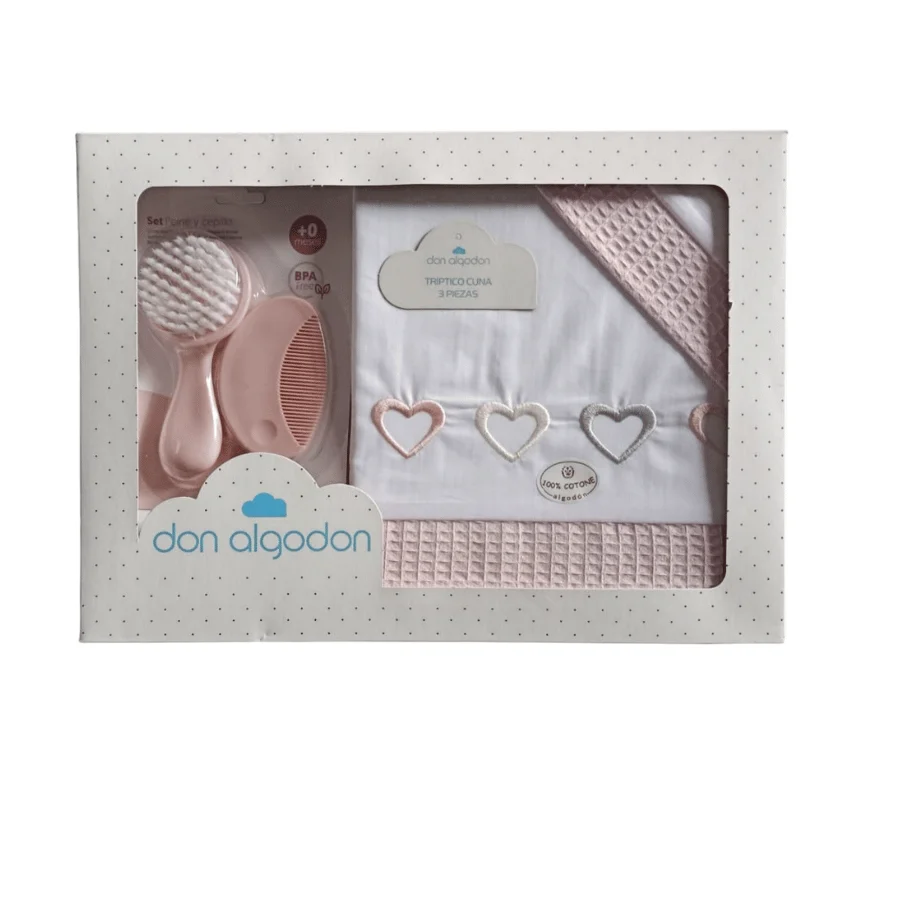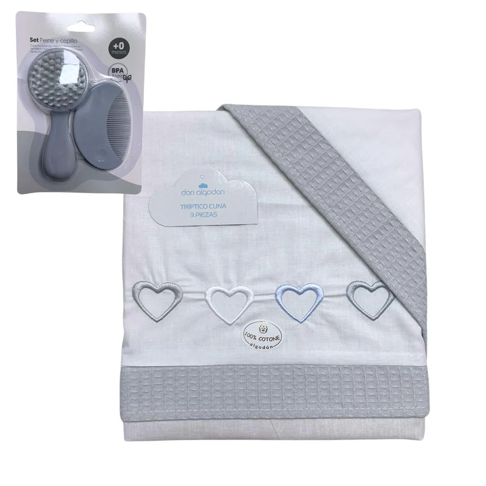 La parure de lit bébé 3 pièces 60×120 Cœur avec brosse et peigne – Don Algodón est conçue pour créer un environnement de sommeil doux, rassurant et raffiné pour votre bébé. Spécialement adaptée aux lits bébé aux dimensions 60 × 120 cm, elle allie qualité des matériaux, confort optimal et design tendre.
