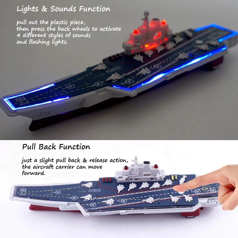 - Effets sonores et lumineux : Détachez l’isolation et appuyez sur la roue arrière du porte-avions jouet, ce qui produira des lumières et 4 effets sonores différents, tout comme un vrai porte-avions.