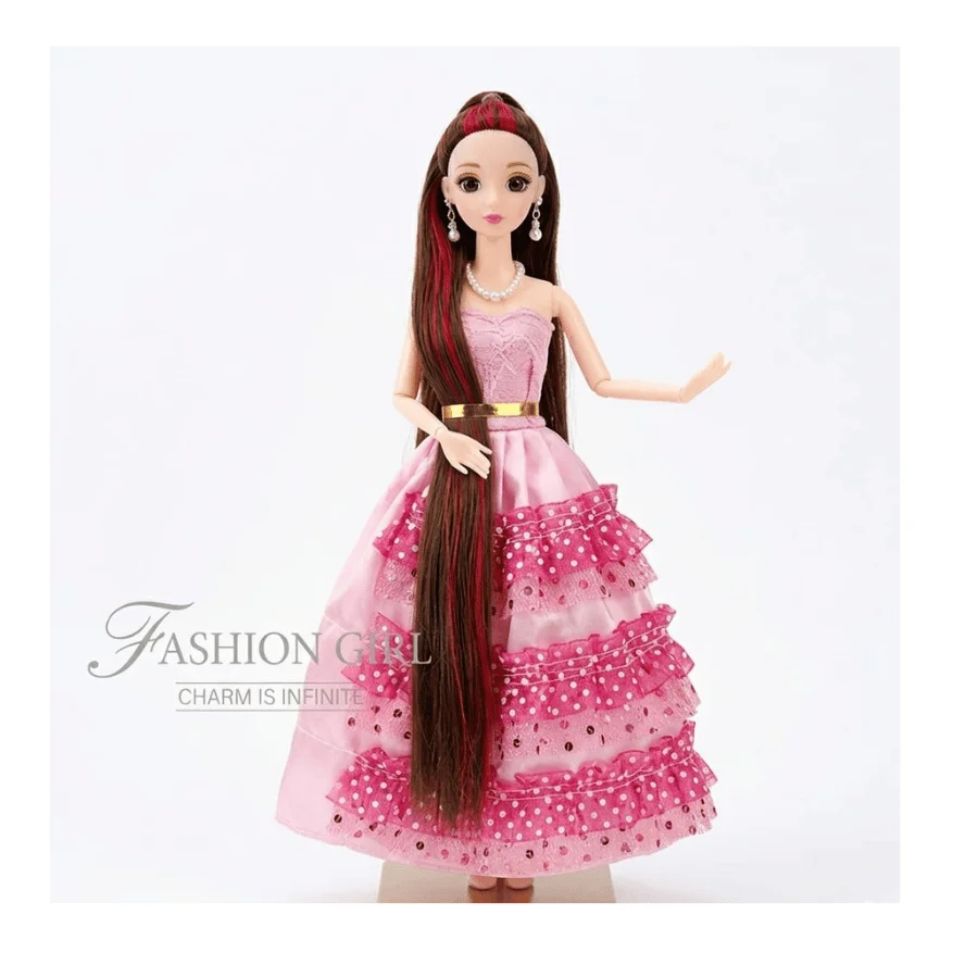 Poupée Fashion Girl 28 cm avec robe de princesse, idéale pour stimuler l’imagination des enfants. Disponible chez Gobebe, livraison rapide partout au Maroc!