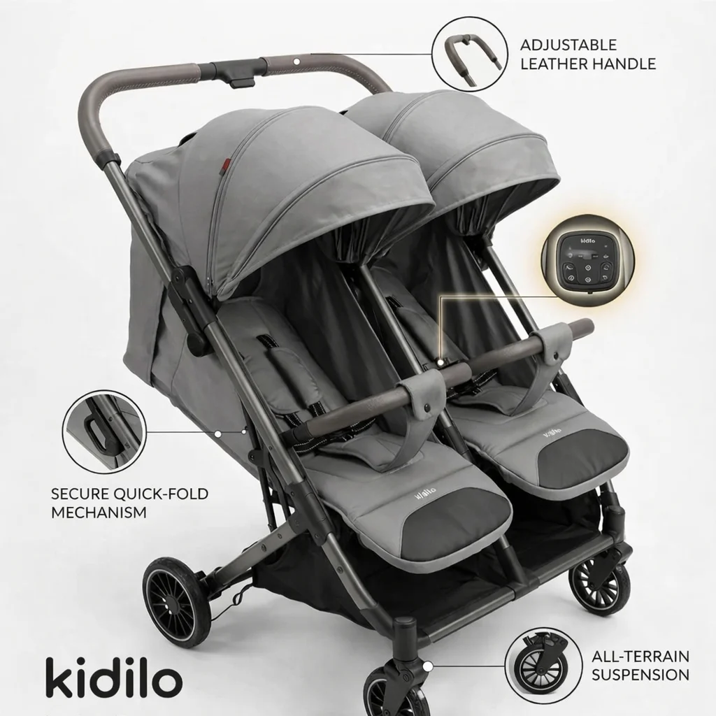 Gobébé Maroc vous propose la poussette jumeaux T22 – Kidilo, une solution pratique et fonctionnelle pour les parents de jumeaux ou d’enfants rapprochés.