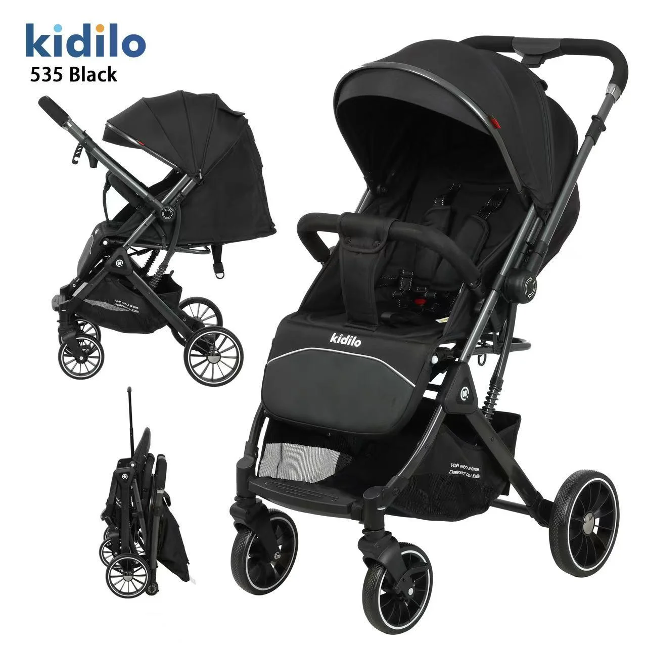 Poussette réversible 535 Kidilo : confort, sécurité et praticité pour des promenades en toute sérénité. Son design ingénieux allie facilité d’utilisation et bien-être pour bébé.