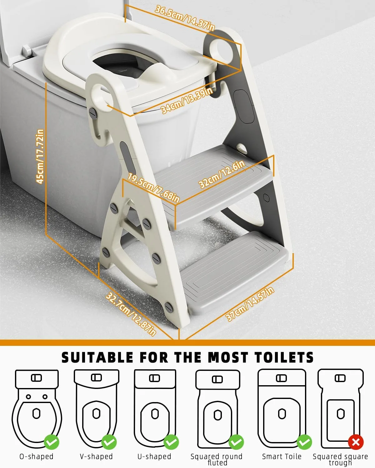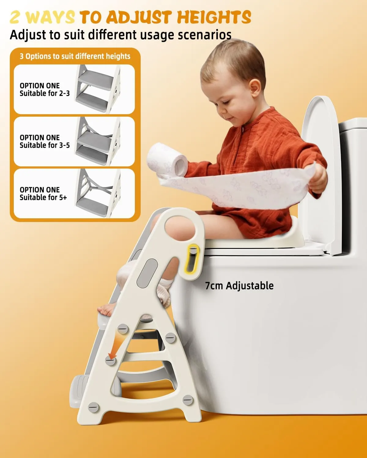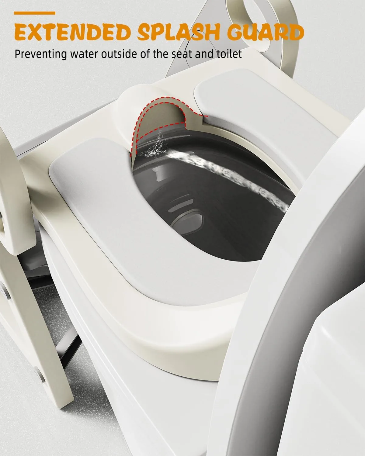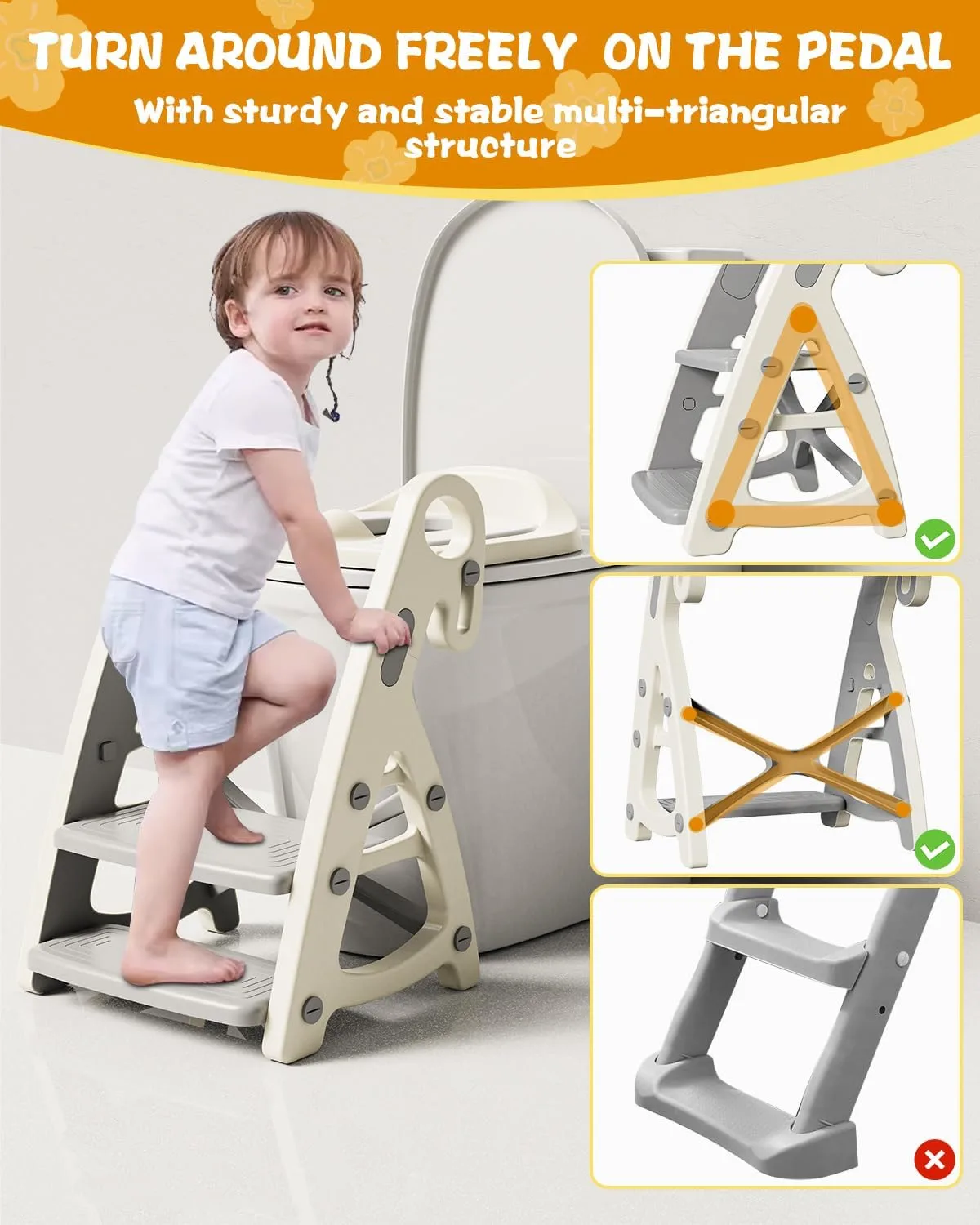 Réducteur Toilette Enfant 2en1 -BM avec escalier dispose de supports triangulaires étendus des deux côtés et de croix dorsales pour former une structure triangulaire multiple qui garantit une stabilité inégalée. Ce siège de toilette polyvalent peut être plié comme un marchepied pour que les enfants puissent atteindre des endroits plus élevés.