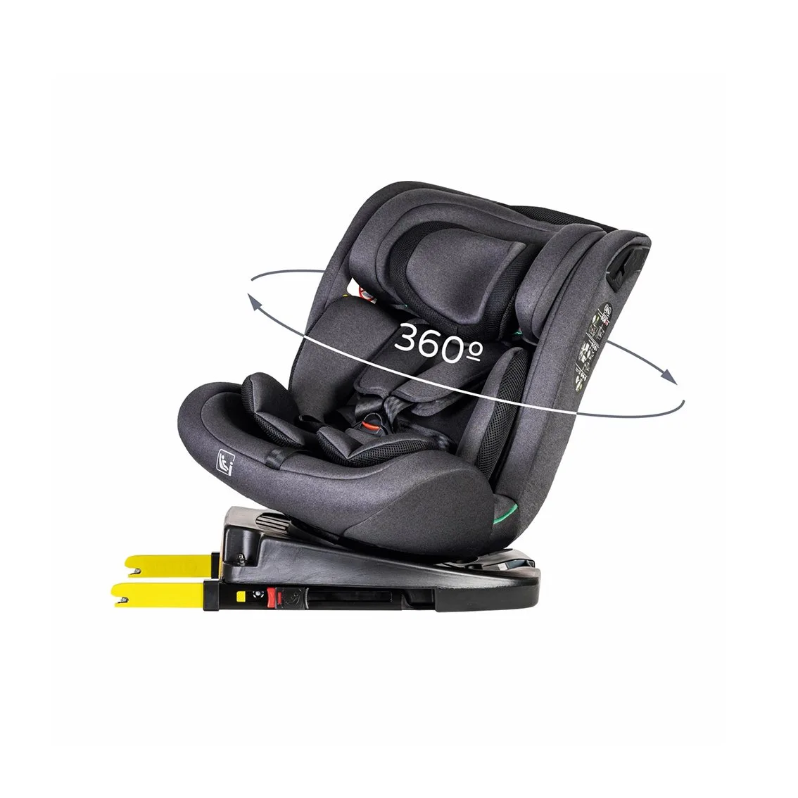 Le système pivotant 360° permet de passer du mode dos route au mode face route en quelques secondes. Le siège peut également être orienté vers la porte, facilitant considérablement l’installation et la sortie de bébé, même dans les petits véhicules.