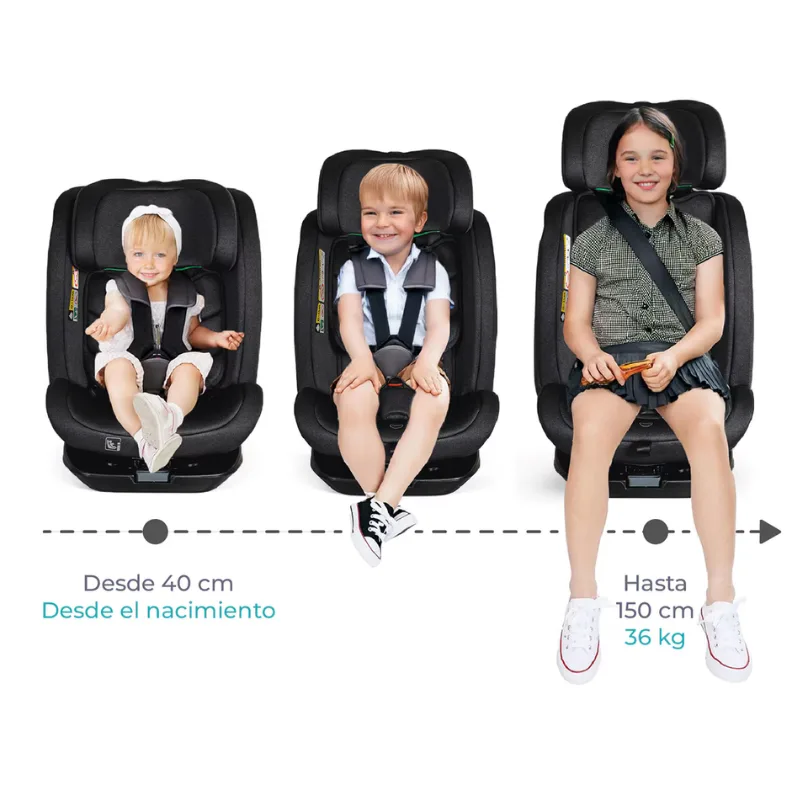 - Compatible de 40 à 150 cm (env. 0 à 12 ans), il couvre les groupes 0/1/2/3 selon les standards européens.