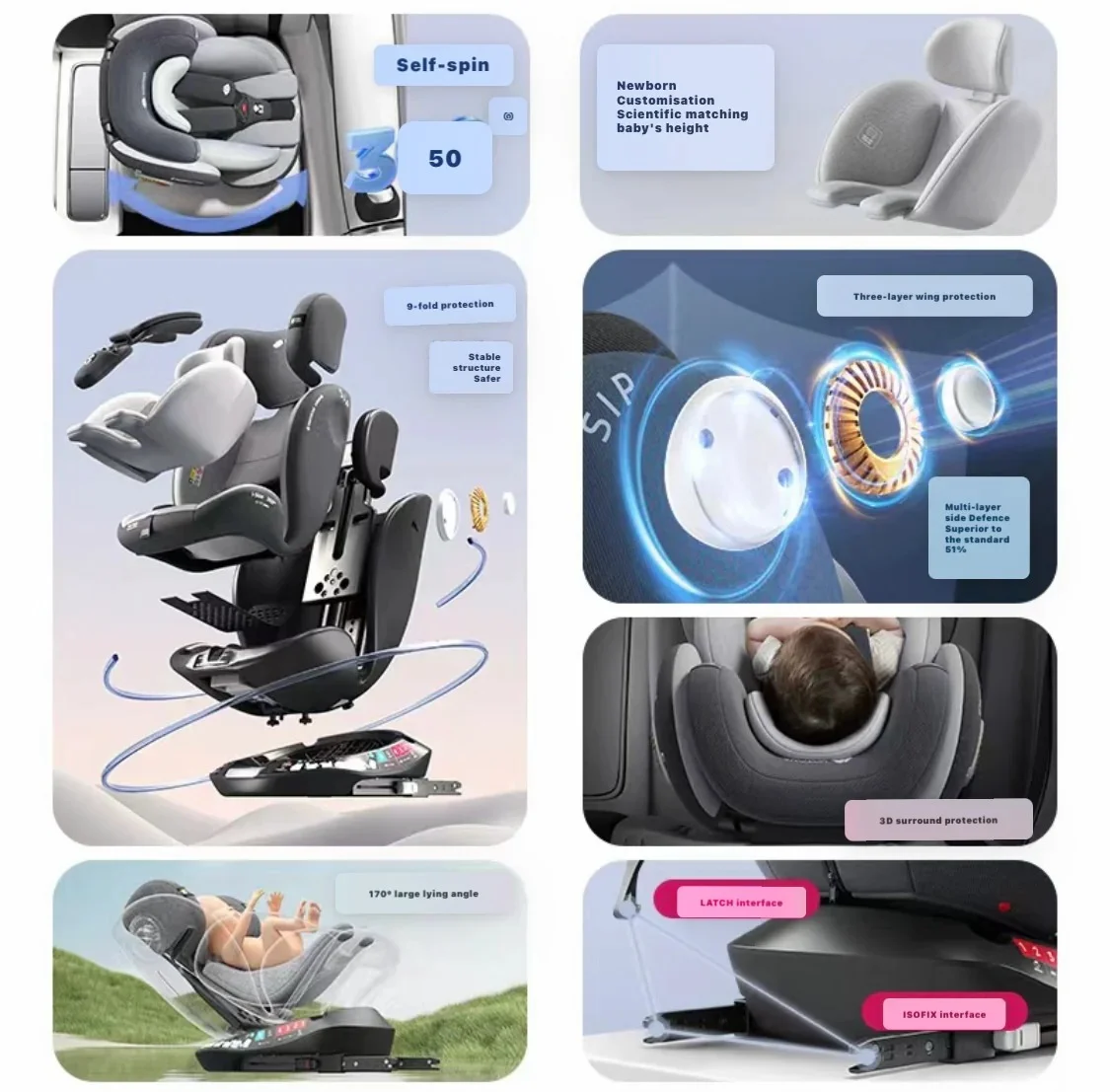 Siège auto G406 Gris Groupe 0/1/2/3 rotatif 360° isofix – Bubbly