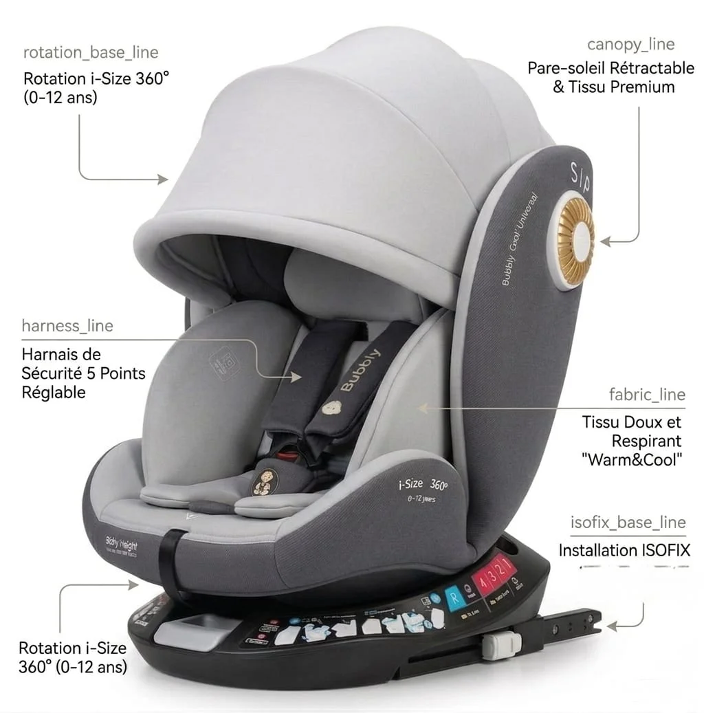 Gobébé Maroc vous propose ce siège auto rotatif 360° Isofix, conçu pour offrir à votre enfant un maximum de sécurité, confort et praticité dès les premiers trajets.