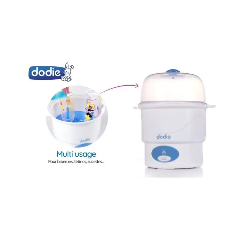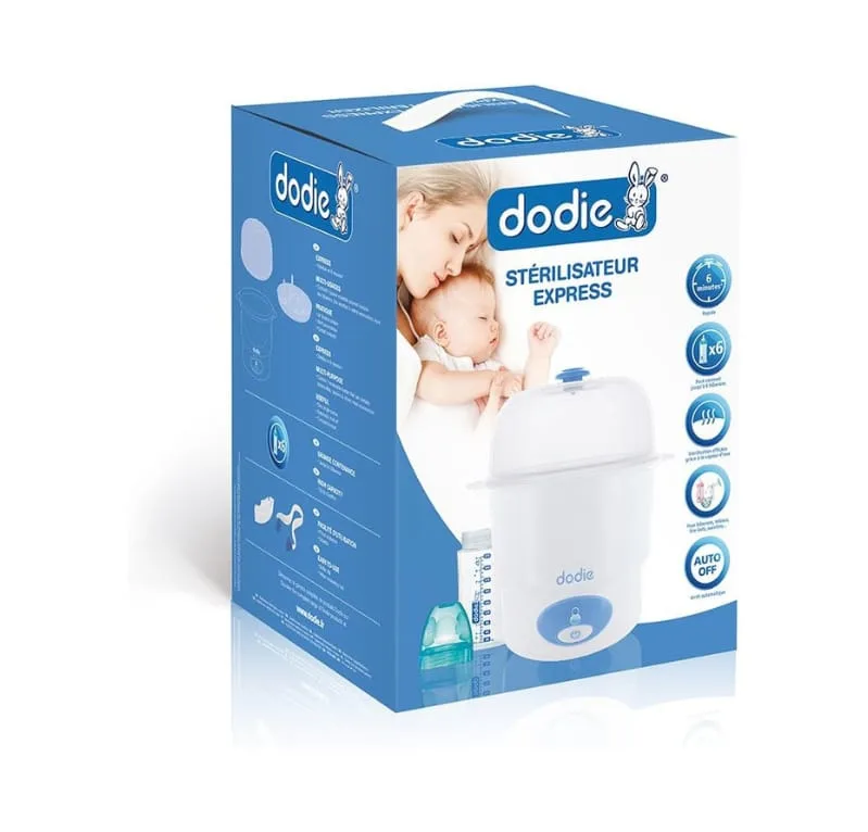 Stérilisateur Express Dodie, conçu pour stériliser les biberons, tétines, tire-laits et sucettes de votre bébé en toute sécurité et hygiène.