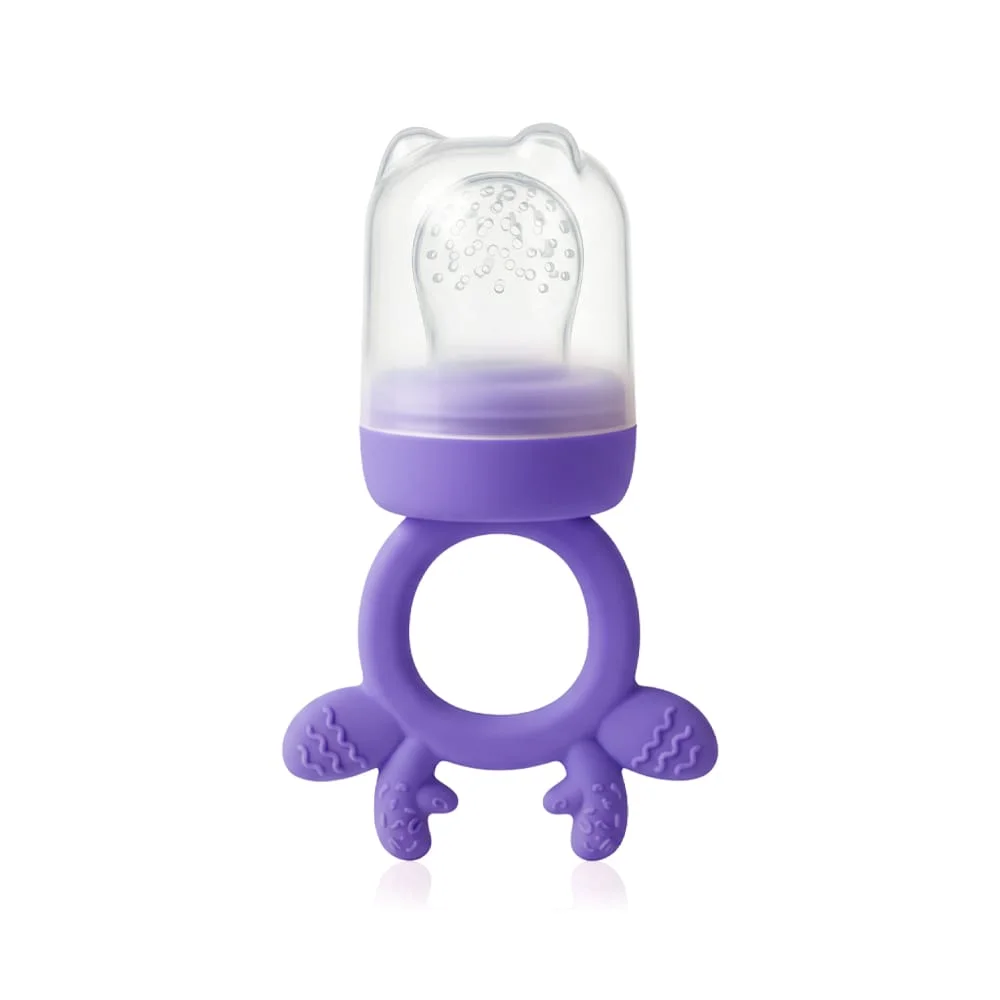Conçue pour introduire les fruits, légumes et aliments mous, cette grignoteuse permet à bébé de goûter de nouvelles saveurs sans risque. Les aliments sont placés dans un embout spécialement conçu pour laisser passer de petites quantités, réduisant ainsi le risque d’étouffement.