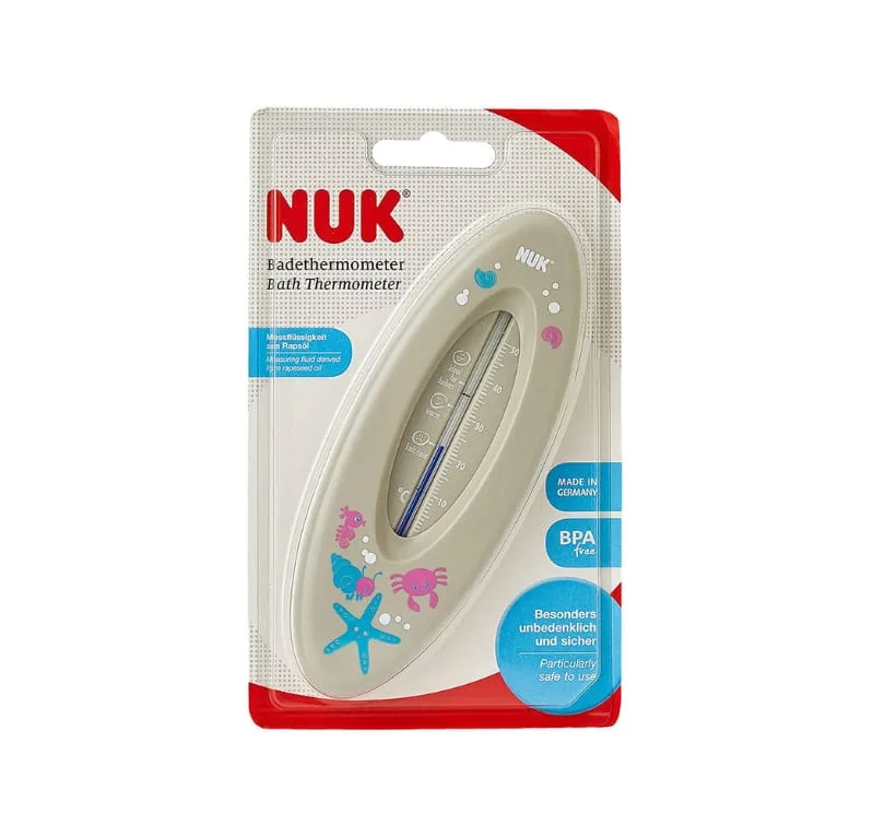 Thermomètre de Bain – Nuk est muni d’un cadran facile à lire qui affiche la température de l’eau en degrés Celsius (°C). Les chiffres sont clairs et bien visibles pour une lecture précise.