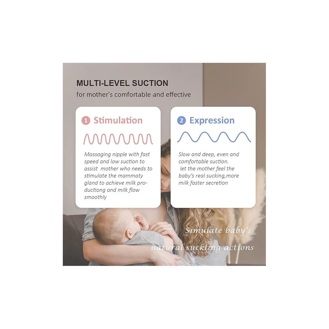 • Confort Personnalisable : Plusieurs niveaux d'aspiration et de vitesse pour s'adapter parfaitement à la sensibilité de chaque poitrine.