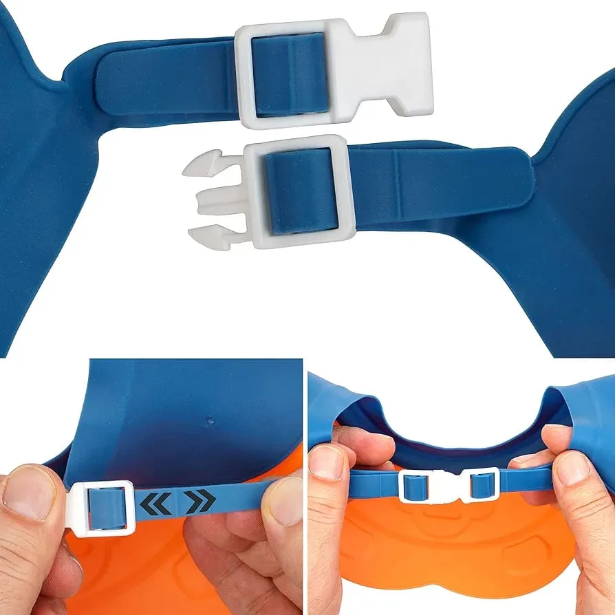 Visière De Bain – BM très légère et confortable à porter pour bébé, elle est en plastique, le tour de tête est en caoutchouc souple (et doux) extensible. grâce à sa fermeture à boucle et ses sangles réglables, cette visière de bain convient à tous. Elle épouse délicatement la tête de votre enfant et prévient les irritations des oreilles dues à l’eau et des yeux dues au shampoing ou au savon.
